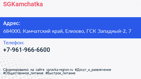 SGKamchatka по адресу 684000, Камчатский край, Елизово, ГСК Западный-2, 7 в дальнейшем Организация, размещена в следующих категориях: