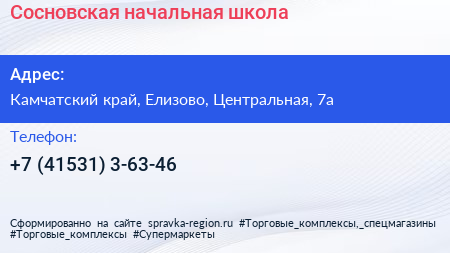 Сосновская начальная школа по адресу Камчатский край, Елизово, Центральная, 7а в дальнейшем Организация, размещена в следующих категориях: