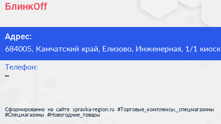 БлинкOff по адресу 684005, Камчатский край, Елизово, Инженерная, 1/1 киоск в дальнейшем Организация, размещена в следующих категориях: