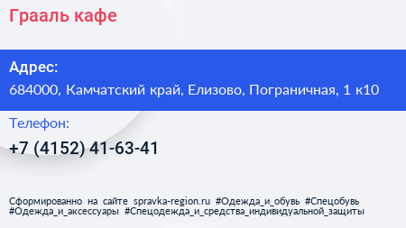 Грааль, кафе по адресу 684000, Камчатский край, Елизово, Пограничная, 1 к10 в дальнейшем Организация, размещена в следующих категориях: