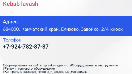 Kebab lavash по адресу 684000, Камчатский край, Елизово, Завойко, 2/4 киоск в дальнейшем Организация, размещена в следующих категориях: