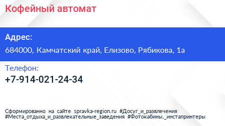 Кофейный автомат по адресу 684000, Камчатский край, Елизово, Рябикова, 1а в дальнейшем Организация, размещена в следующих категориях:
