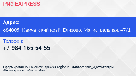 Рис EXPRESS по адресу 684005, Камчатский край, Елизово, Магистральная, 47/1 в дальнейшем Организация, размещена в следующих категориях: