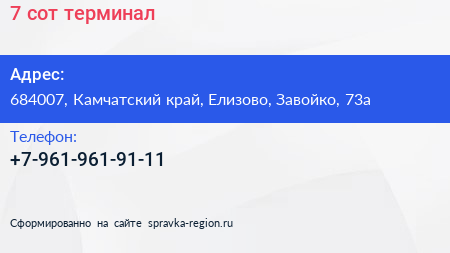 7 сот, терминал по адресу 684007, Камчатский край, Елизово, Завойко, 73а в дальнейшем Организация, размещена в следующих категориях: