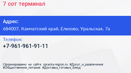 7 сот, терминал по адресу 684007, Камчатский край, Елизово, Уральская, 7а в дальнейшем Организация, размещена в следующих категориях: