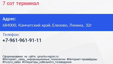 7 сот, терминал по адресу 684000, Камчатский край, Елизово, Ленина, 32г в дальнейшем Организация, размещена в следующих категориях: