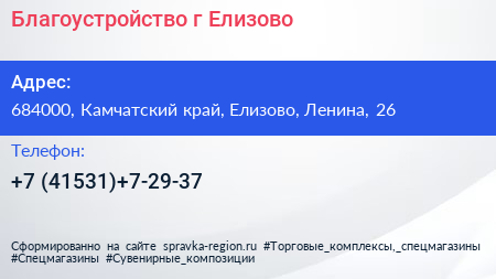 Благоустройство г. Елизово по адресу 684000, Камчатский край, Елизово, Ленина, 26 в дальнейшем Организация, размещена в следующих категориях: