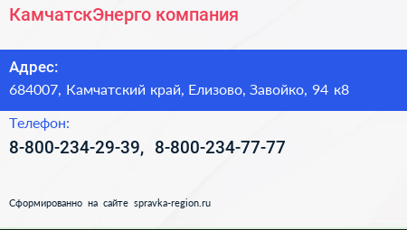 КамчатскЭнерго, компания по адресу 684007, Камчатский край, Елизово, Завойко, 94 к8 в дальнейшем Организация, размещена в следующих категориях: