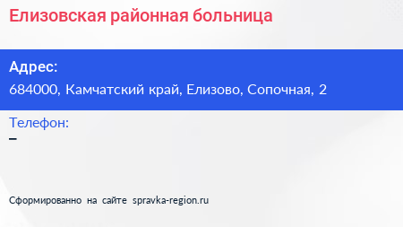 Елизовская районная больница по адресу 684000, Камчатский край, Елизово, Сопочная, 2 в дальнейшем Организация, размещена в следующих категориях: