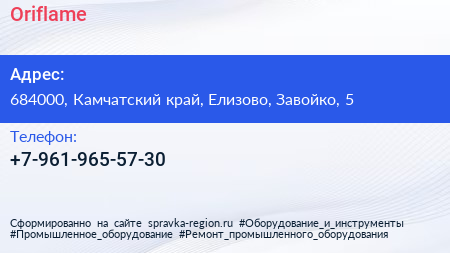Oriflame по адресу 684000, Камчатский край, Елизово, Завойко, 5 в дальнейшем Организация, размещена в следующих категориях: