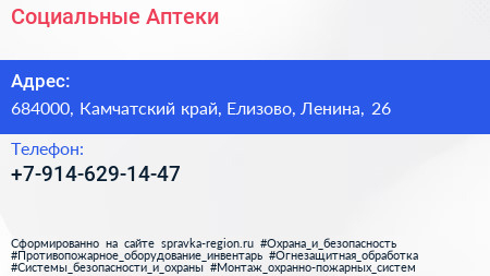 Социальные Аптеки по адресу 684000, Камчатский край, Елизово, Ленина, 26 в дальнейшем Организация, размещена в следующих категориях: