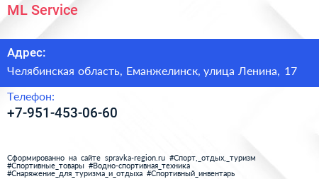 ML-Service по адресу Челябинская область, Еманжелинск, улица Ленина, 17 в дальнейшем Организация, размещена в следующих категориях: