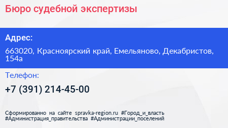 Бюро судебной экспертизы по адресу 663020, Красноярский край, Емельяново, Декабристов, 154а в дальнейшем Организация, размещена в следующих категориях: