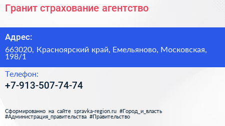 Гранит-страхование, агентство по адресу 663020, Красноярский край, Емельяново, Московская, 198/1 в дальнейшем Организация, размещена в следующих категориях: