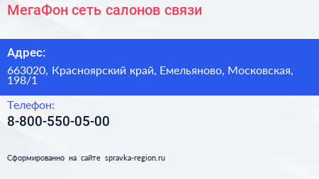МегаФон, сеть салонов связи по адресу 663020, Красноярский край, Емельяново, Московская, 198/1 в дальнейшем Организация, размещена в следующих категориях: