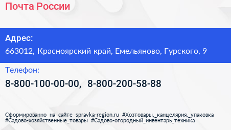Почта России по адресу 663012, Красноярский край, Емельяново, Гурского, 9 в дальнейшем Организация, размещена в следующих категориях: