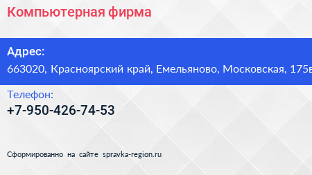 Компьютерная фирма по адресу 663020, Красноярский край, Емельяново, Московская, 175в в дальнейшем Организация, размещена в следующих категориях: