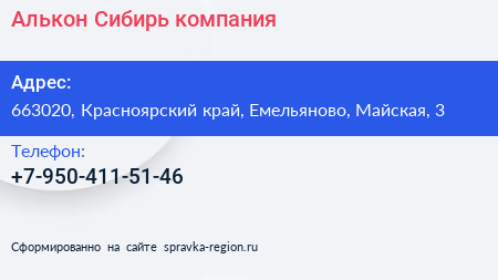 Алькон-Сибирь, компания по адресу 663020, Красноярский край, Емельяново, Майская, 3 в дальнейшем Организация, размещена в следующих категориях: