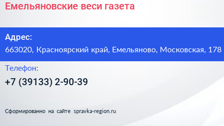 Емельяновские веси, газета по адресу 663020, Красноярский край, Емельяново, Московская, 178 в дальнейшем Организация, размещена в следующих категориях: