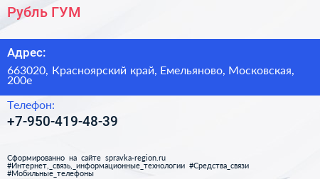 Рубль ГУМ по адресу 663020, Красноярский край, Емельяново, Московская, 200е в дальнейшем Организация, размещена в следующих категориях: