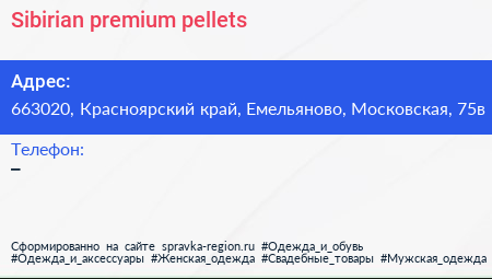 Sibirian premium pellets по адресу 663020, Красноярский край, Емельяново, Московская, 75в в дальнейшем Организация, размещена в следующих категориях: