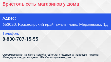 Бристоль, сеть магазинов у дома по адресу 663020, Красноярский край, Емельяново, Мерзлякова, 1д в дальнейшем Организация, размещена в следующих категориях: