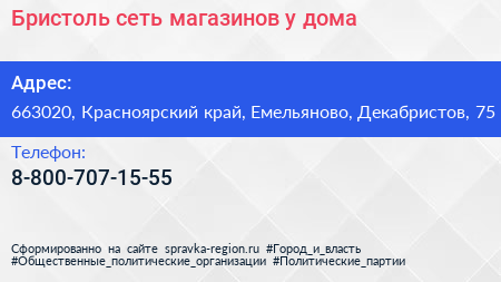 Бристоль, сеть магазинов у дома по адресу 663020, Красноярский край, Емельяново, Декабристов, 75 в дальнейшем Организация, размещена в следующих категориях: