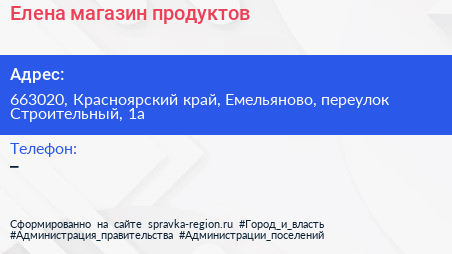 Елена, магазин продуктов по адресу 663020, Красноярский край, Емельяново, переулок Строительный, 1а в дальнейшем Организация, размещена в следующих категориях: