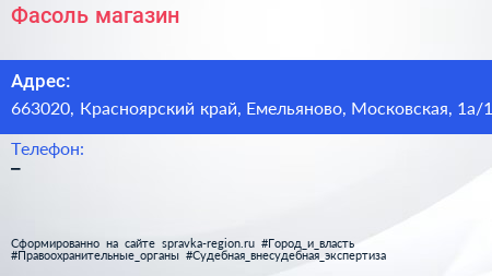 Фасоль, магазин по адресу 663020, Красноярский край, Емельяново, Московская, 1а/1 в дальнейшем Организация, размещена в следующих категориях: