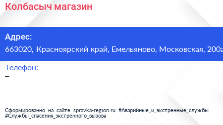 Колбасыч, магазин по адресу 663020, Красноярский край, Емельяново, Московская, 200а в дальнейшем Организация, размещена в следующих категориях: