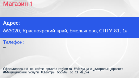 Магазин №1 по адресу 663020, Красноярский край, Емельяново, СПТУ-81, 1а в дальнейшем Организация, размещена в следующих категориях: