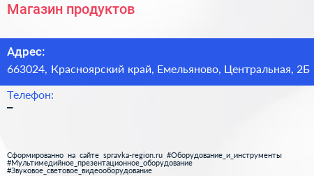 Магазин продуктов по адресу 663024, Красноярский край, Емельяново, Центральная, 2Б в дальнейшем Организация, размещена в следующих категориях: