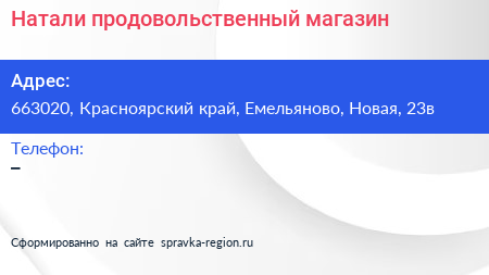 Натали, продовольственный магазин по адресу 663020, Красноярский край, Емельяново, Новая, 23в в дальнейшем Организация, размещена в следующих категориях: