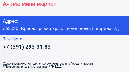 Аязма, мини-маркет по адресу 663020, Красноярский край, Емельяново, Гагарина, 2д в дальнейшем Организация, размещена в следующих категориях:
