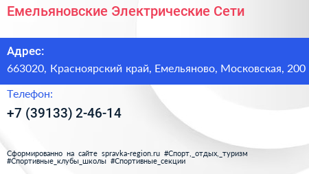 Емельяновские Электрические Сети по адресу 663020, Красноярский край, Емельяново, Московская, 200 в дальнейшем Организация, размещена в следующих категориях: