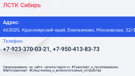 ЛСТК-Сибирь по адресу 663020, Красноярский край, Емельяново, Московская, 32/1 в дальнейшем Организация, размещена в следующих категориях: