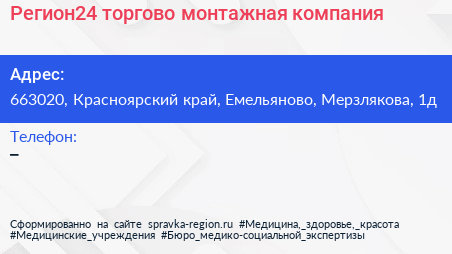 Регион24, торгово-монтажная компания по адресу 663020, Красноярский край, Емельяново, Мерзлякова, 1д в дальнейшем Организация, размещена в следующих категориях: