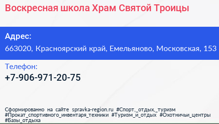 Воскресная школа, Храм Святой Троицы по адресу 663020, Красноярский край, Емельяново, Московская, 153 в дальнейшем Организация, размещена в следующих категориях: