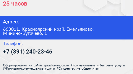 25 часов по адресу 663011, Красноярский край, Емельяново, Минино-Бугачево, 1 в дальнейшем Организация, размещена в следующих категориях: