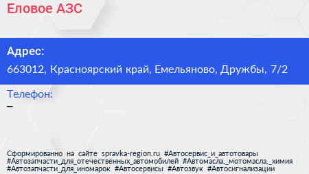 Еловое, АЗС по адресу 663012, Красноярский край, Емельяново, Дружбы, 7/2 в дальнейшем Организация, размещена в следующих категориях: