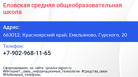 Еловская средняя общеобразовательная школа по адресу 663012, Красноярский край, Емельяново, Гурского, 20 в дальнейшем Организация, размещена в следующих категориях: