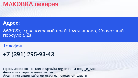 МАКОВКА, пекарня по адресу 663020, Красноярский край, Емельяново, Совхозный переулок, 2а в дальнейшем Организация, размещена в следующих категориях: