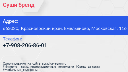 Суши бренд по адресу 663020, Красноярский край, Емельяново, Московская, 116 в дальнейшем Организация, размещена в следующих категориях: