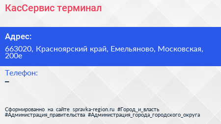 КасСервис, терминал по адресу 663020, Красноярский край, Емельяново, Московская, 200е в дальнейшем Организация, размещена в следующих категориях: