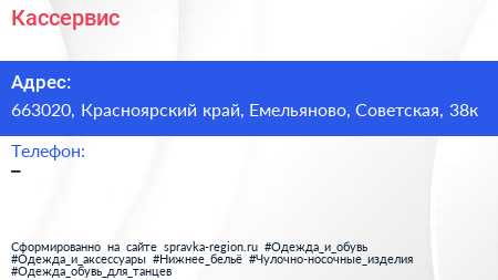 Кассервис по адресу 663020, Красноярский край, Емельяново, Советская, 38к в дальнейшем Организация, размещена в следующих категориях: