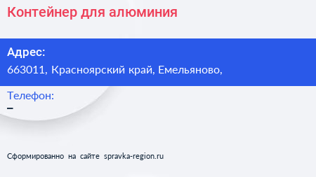 Контейнер для алюминия по адресу 663011, Красноярский край, Емельяново, в дальнейшем Организация, размещена в следующих категориях: