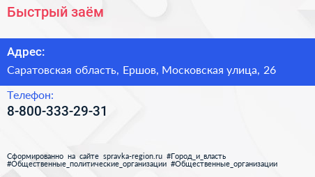 Быстрый заём по адресу Саратовская область, Ершов, Московская улица, 26 в дальнейшем Организация, размещена в следующих категориях: