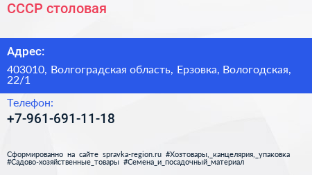 СССР, столовая по адресу 403010, Волгоградская область, Ерзовка, Вологодская, 22/1 в дальнейшем Организация, размещена в следующих категориях: