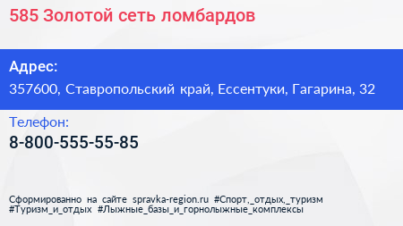585*Золотой, сеть ломбардов по адресу 357600, Ставропольский край, Ессентуки, Гагарина, 32 в дальнейшем Организация, размещена в следующих категориях: