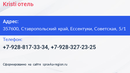 Kristi, отель по адресу 357600, Ставропольский край, Ессентуки, Советская, 5/1 в дальнейшем Организация, размещена в следующих категориях: